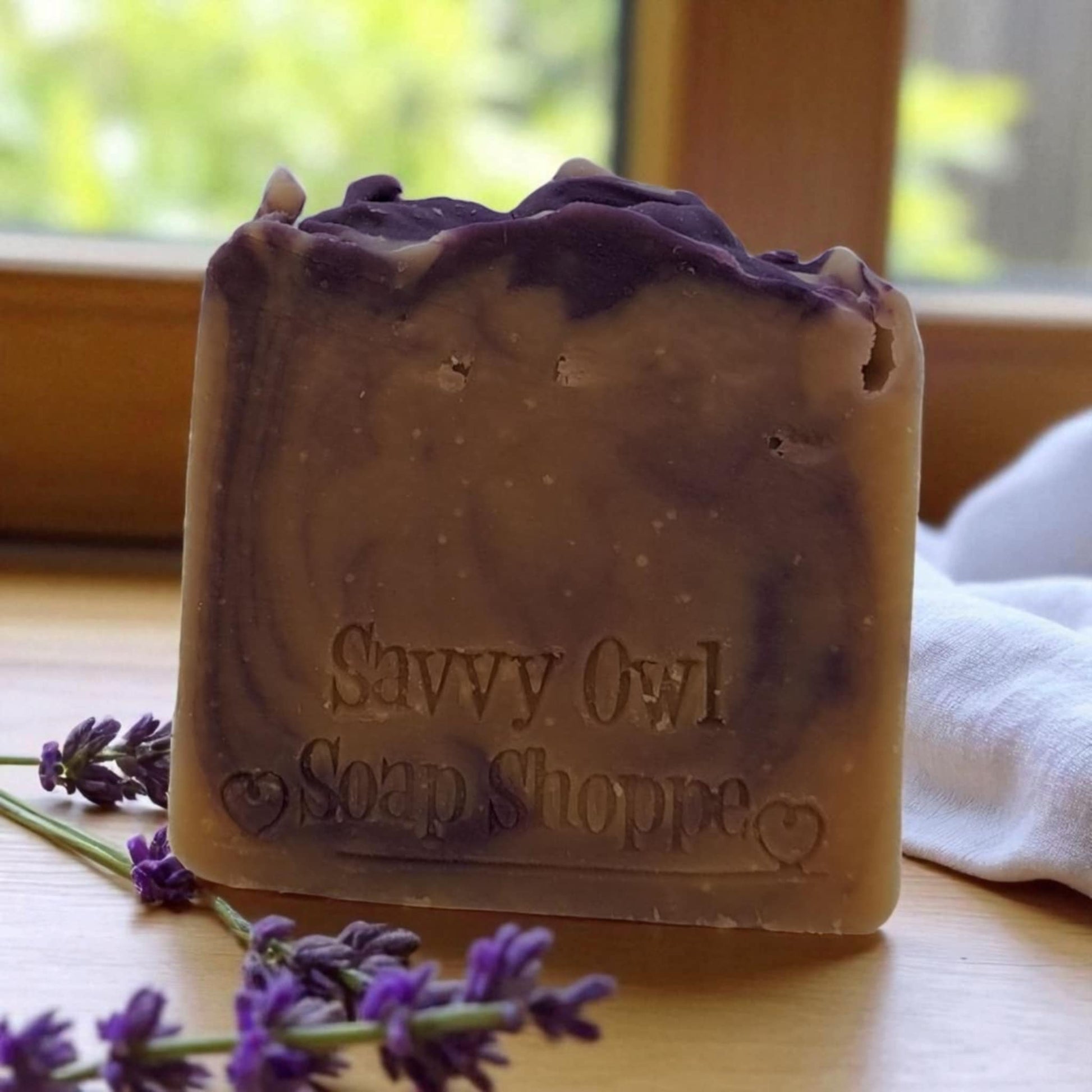 Goat's Milk Soap- Lavender Fragrance with lavender colored swirls. If you like lavender you will love this rich lavender fragrance. 4.2 oz. / 120 gr.
