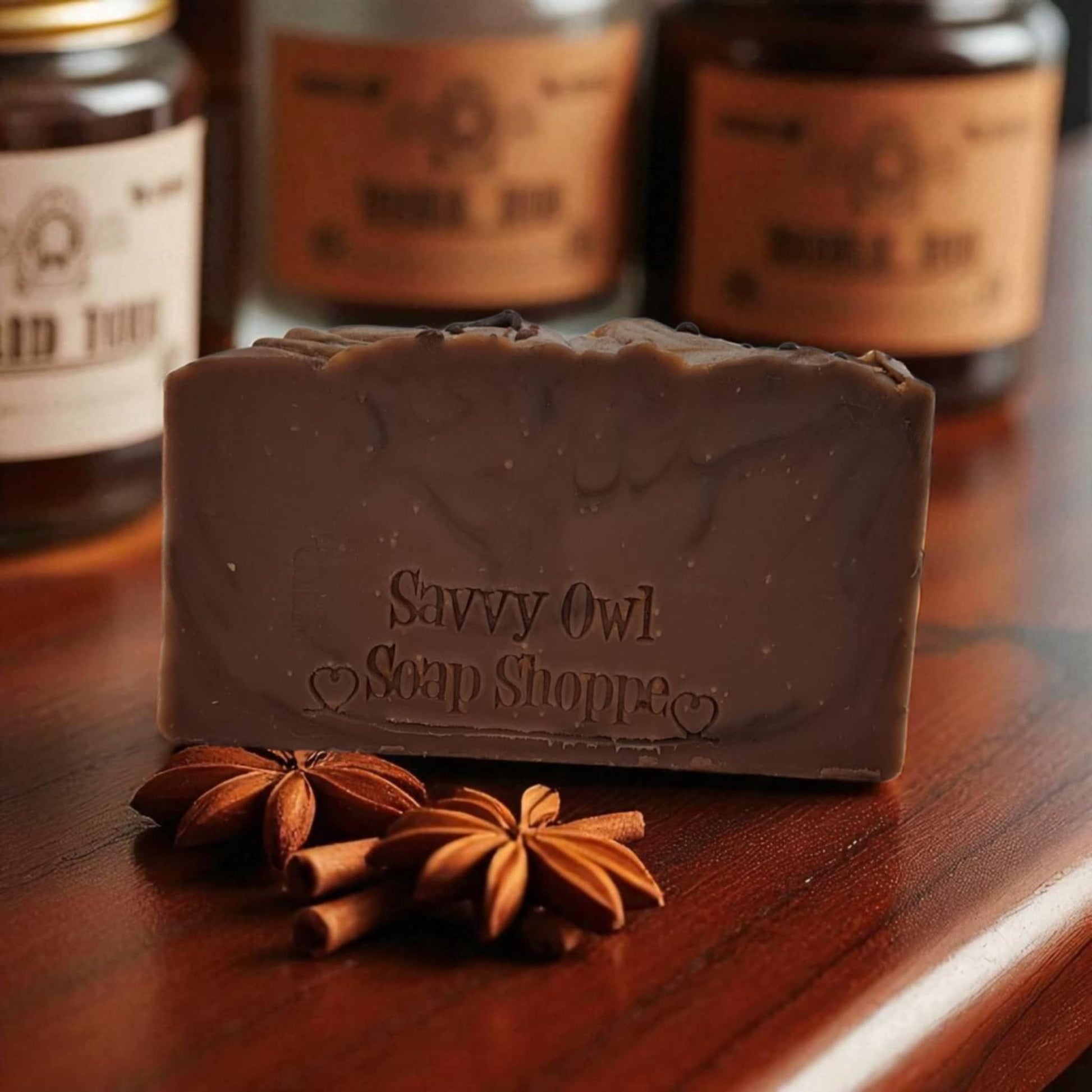 Spiced Mahogany- This is our top selling fragrance. A wonderful blend of Italian bergamot, applewood, tonka bean, patchouli, cedarwood, oakmoss, cardamom, vanilla and allspice. You will not be disappointed. Mahogany naturally colors dark, I added some black, brown, and copper to make it stand out. Look for other products in this fragrance.